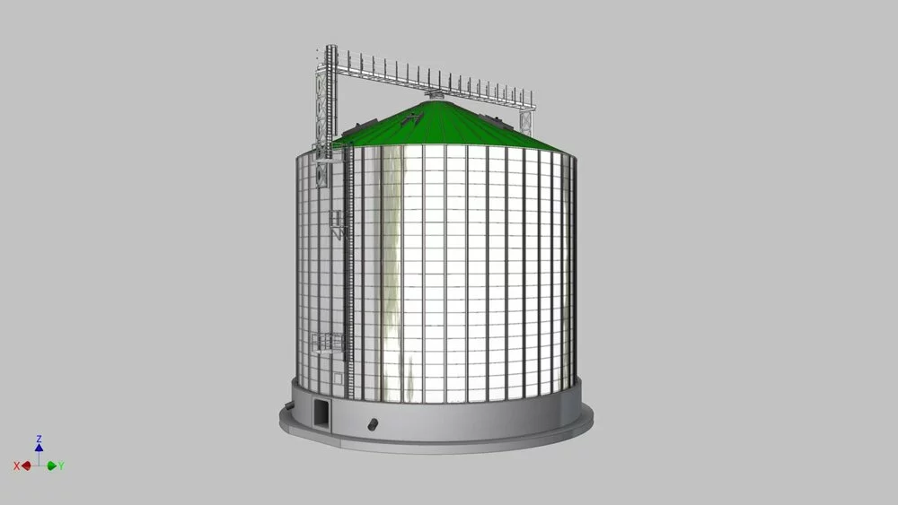 Металеві силоси з плоским дном RIELA для зберігання зерна, комбікорму та інших сипких кормів.