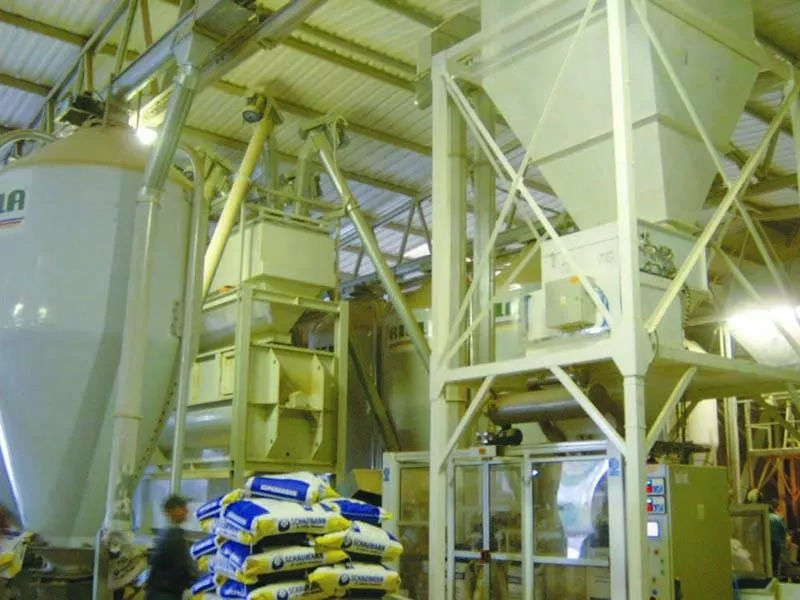 Комбикормовый завод - это целая структура с механизированной завальной ямой, зерноочистительными машинами и зерносушилкой, с хранилищем силосного типа для хранения зернового сырья, транспортирующими устройствами, рядами бункеров, для измельченного зерна и шрота, а также для компонентов, которые не нуждаются в измельчении, - вплоть до упаковки комбикорма в тару, узла отгрузки на автотранспорт.