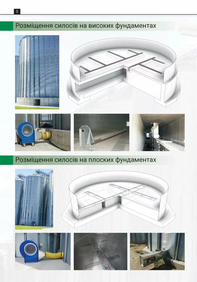 Соответствуют требованиям по снеговым и ветровым нагрузкам в Украине, выносливость в сейсмично активных зонах. Проверены статически. Комплектуются высококачественным и прочным транспортным оборудованием (нории, редлеры).